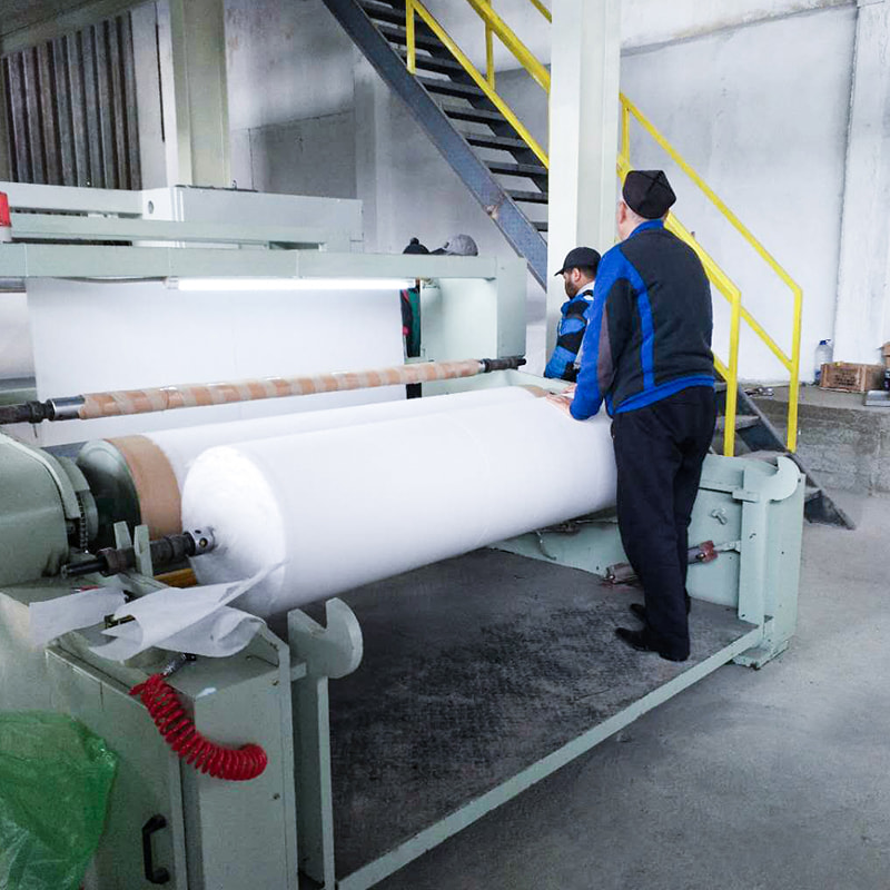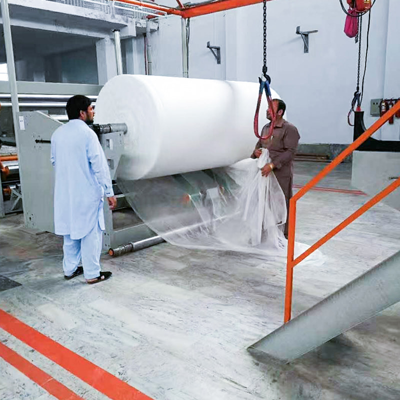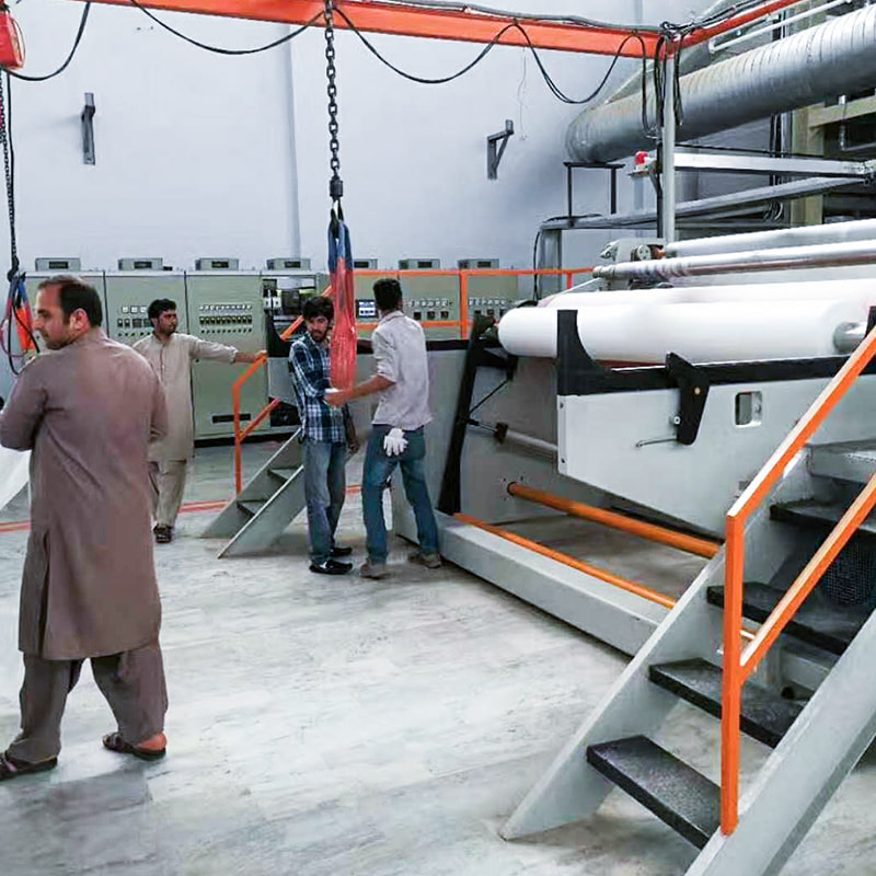 PP spunbond niet-geweven stofmachine wordt gebruikt om pp spunbond niet-geweven stof te produceren. Met snijmachine in onze machine kan de stof in elke breedte worden gesneden om aan verschillende vereisten te voldoen. De loopsnelheid van de machine is 10-150 m / min, filament denier: 1,8-2,3 denier